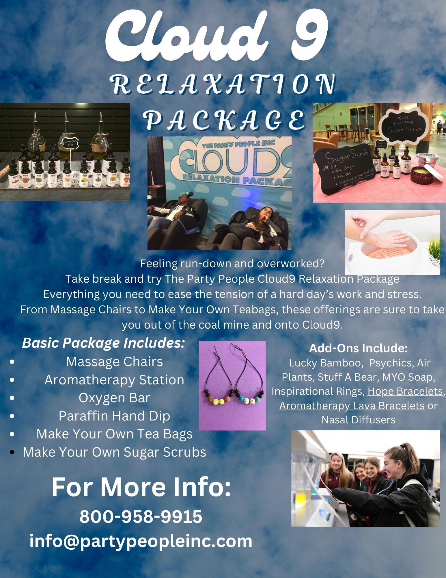 Party People Inc., has been in business for over 20 years. Our goal is to provide quality entertainment services at affordable prices for all organizations. We have over 150 events from inflatables to casino nights to photo events to artistic events and everything in between.