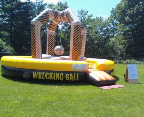 With the Wrecking Ball from the Party People swing the tethered…